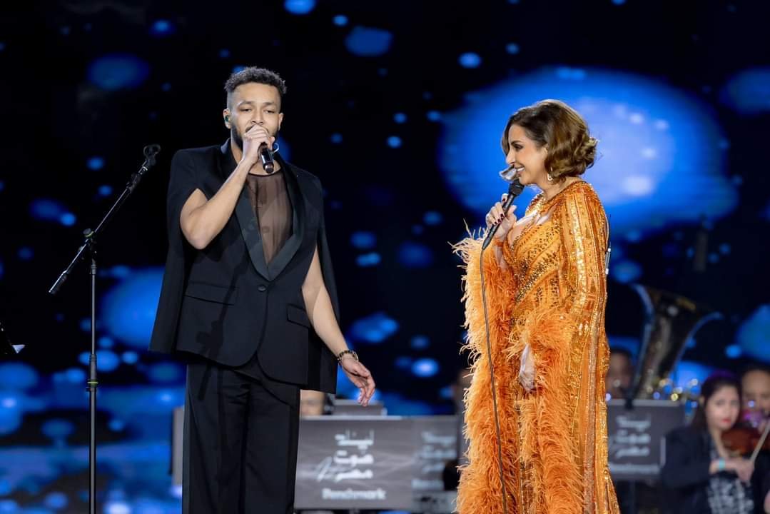 وشارك محمد حماقي أنغام على المسرح وقام بغناء دويتو أغنية “بين البينين” التي لحنها لها.