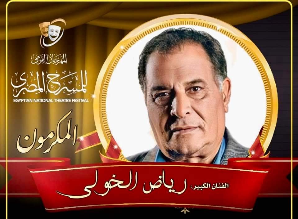 يكرم المهرجان القومي للمسرح المصري برئاسة الفنان محمد رياض ، الفنان الكبير رياض الخولي خلال حفل افتتاح دورته السادسة عشرة، والتي تقام في الفترة من 27 يوليو، وحتى 12 أغسطس، ويأتي التكريم تقديرا لتاريخ الفنان رياض الخولي الكبير ومسيرته الفنية العريقة في المسرح والسينما والتلفزيون .